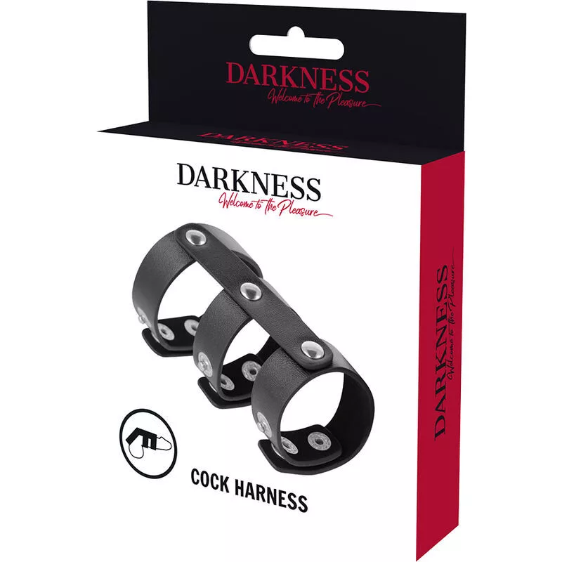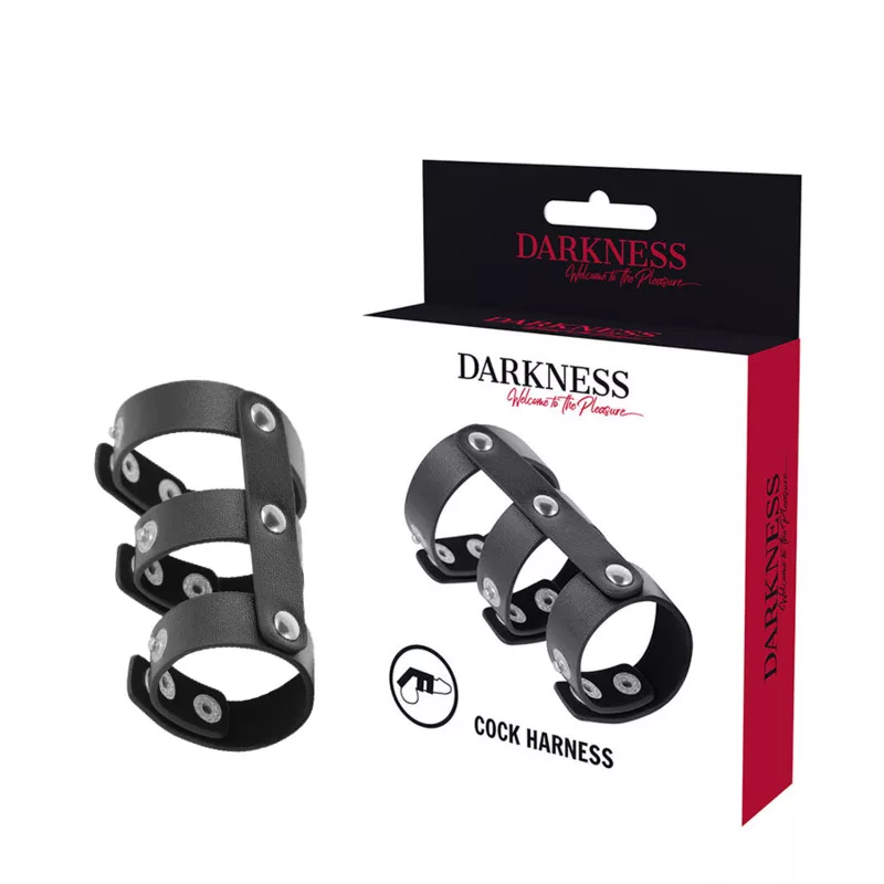 SÖTÉTSÉG – ÁLLÍTHATÓ BŐR DUPLA PÉNISZ ÉS HERÉGYŰRŰ
