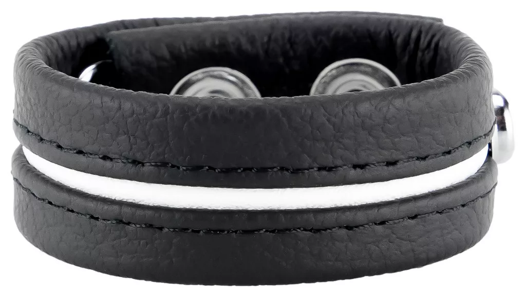 Prémium bőr péniszgyűrű – 3 fokozat, fekete-fehér