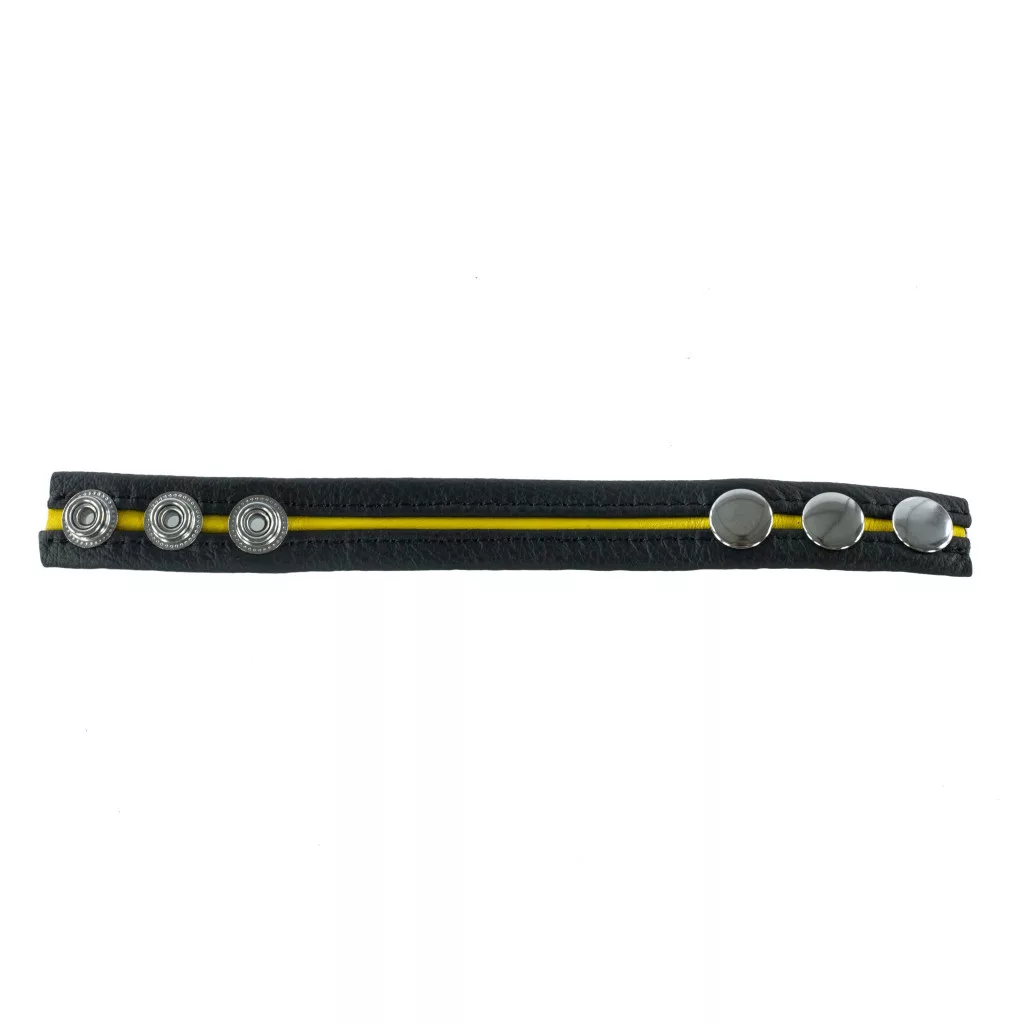 Prémium bőr péniszgyűrű – háromfokozatú zárás, fekete-sárga