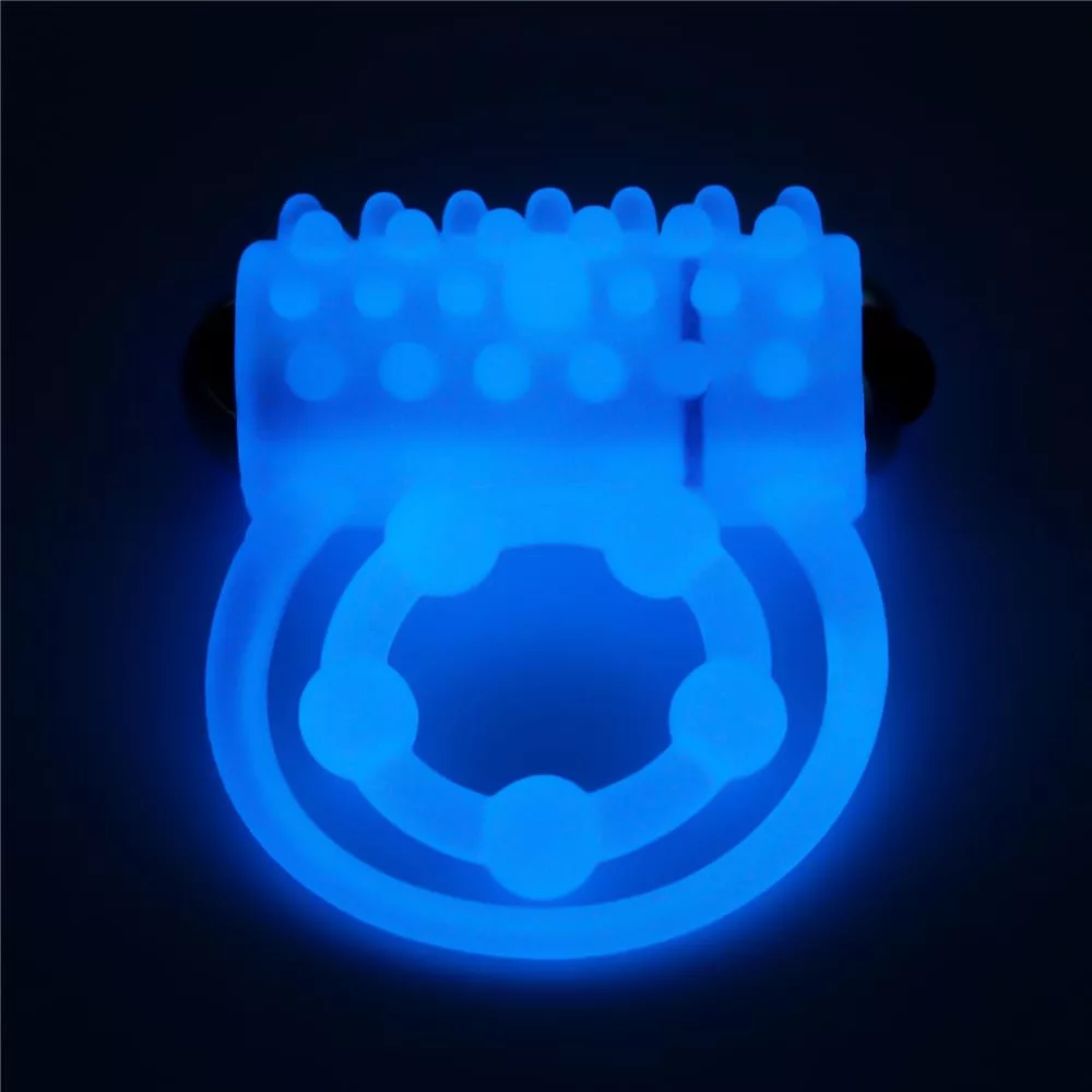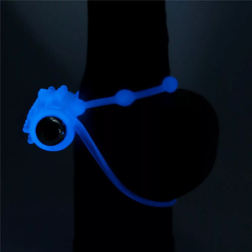 Vibrator-Penisring, der im Dunkeln blau leuchtet. Es sorgt für eine ausreichende Steifheit des Penis und der Vibrator im Inneren hat eine besonders stimulierende Wirkung, mit deren Hilfe das Erlebnis deutlich gesteigert werden kann. Aufgrund seines Designs eignet es sich auch hervorragend zur Stimulation der Klitoris beim Eindringen. Für eine optimale Wirkung wird empfohlen, sich tagsüber Licht auszusetzen.