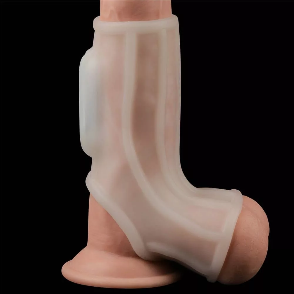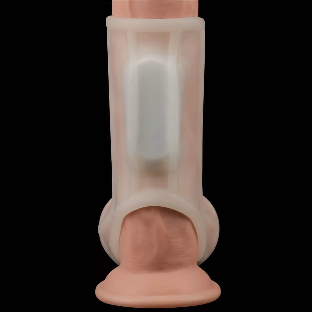 Vibrierender Seidenritter-Ring mit Hodensack-Ärmel (Weiß) II