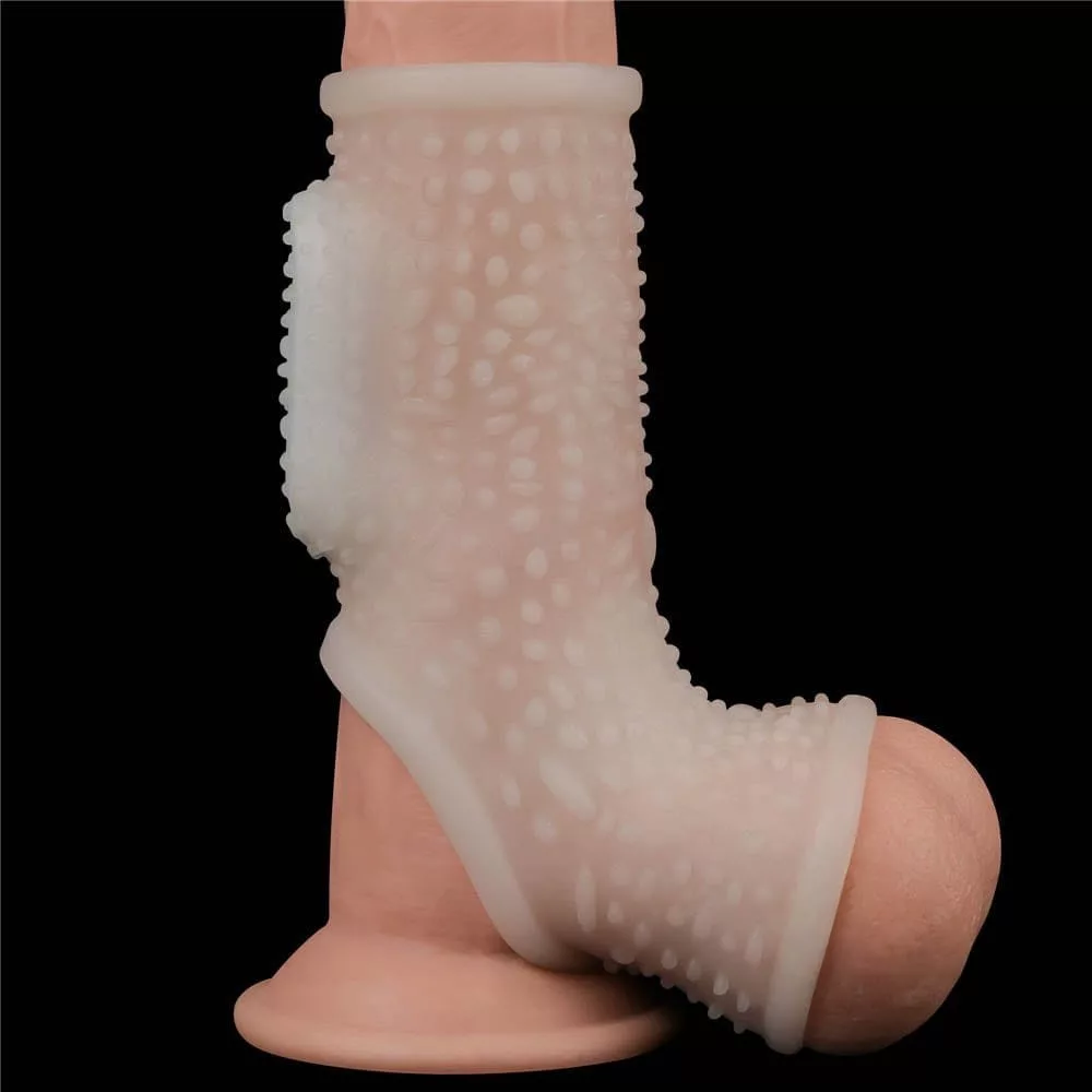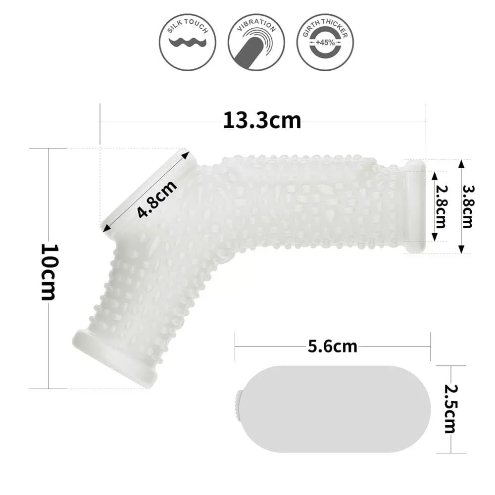 Vibrierender Tropf-Ritter-Ring mit Hodensackhülle (Weiß)